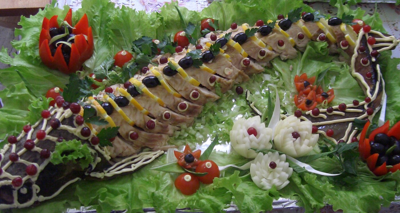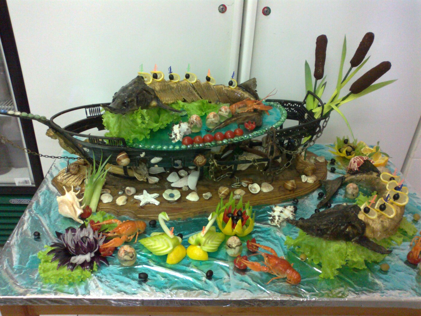 Приготовление салатов,соусов,оформление банкетов,фруктовых ваз,списание.